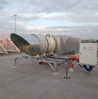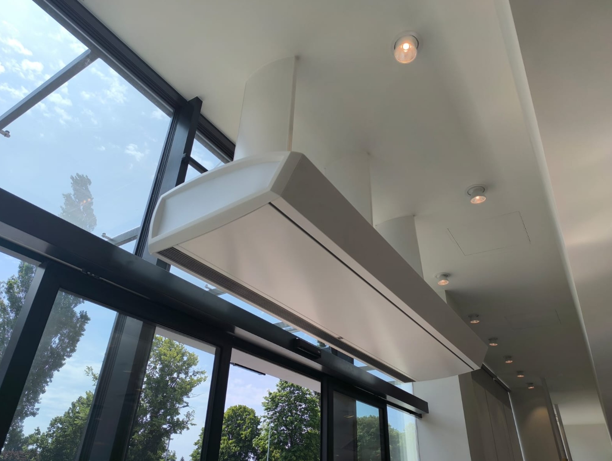 To urządzenie montowane nad wejściem, które tworzy niewidoczną barierę z powietrza, ograniczając utratę ciepła lub chłodu z wnętrza budynku. Źródłem ciepła może być pompa ciepła, grzałka elektryczna lub CT.